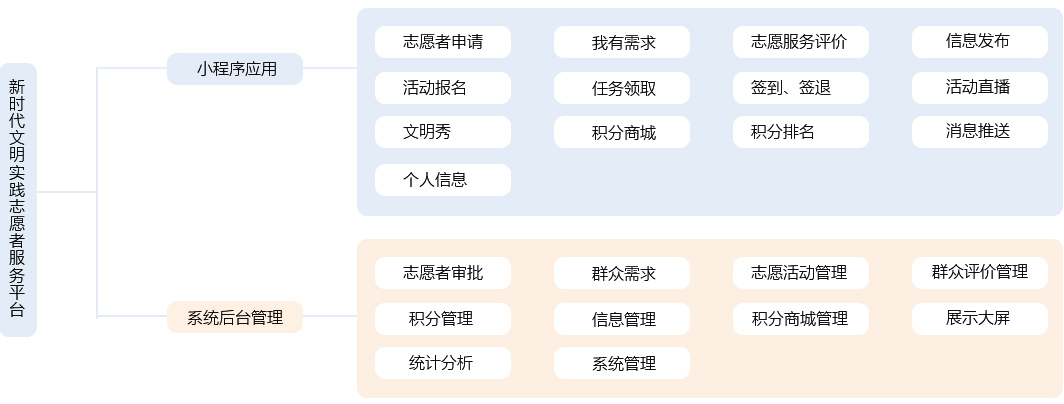 運(yùn)用大數(shù)據(jù)信息化等科技手段,通過線上線下相結(jié)合的模式,打造一個(gè)內(nèi)部管理有序,服務(wù)領(lǐng)域廣泛,服務(wù)能力一流,服務(wù)品牌鮮明,專業(yè)化規(guī)范化水平高的綜合志愿服務(wù)平臺。平臺貫穿整個(gè)志愿服務(wù)流程,以群眾點(diǎn)單、平臺亮單、中心派單、中隊(duì)接單、志愿送單、群眾評單再到積分兌單的七單模式形成志愿服務(wù)完整閉環(huán)。實(shí)現(xiàn)百姓需求隨時(shí)上報(bào)、及時(shí)處理、結(jié)果反饋,系統(tǒng)采用多層級管理、多維度統(tǒng)計(jì)分析、為領(lǐng)導(dǎo)決策提供有力的支持,讓志愿服務(wù)真正深入到基層。